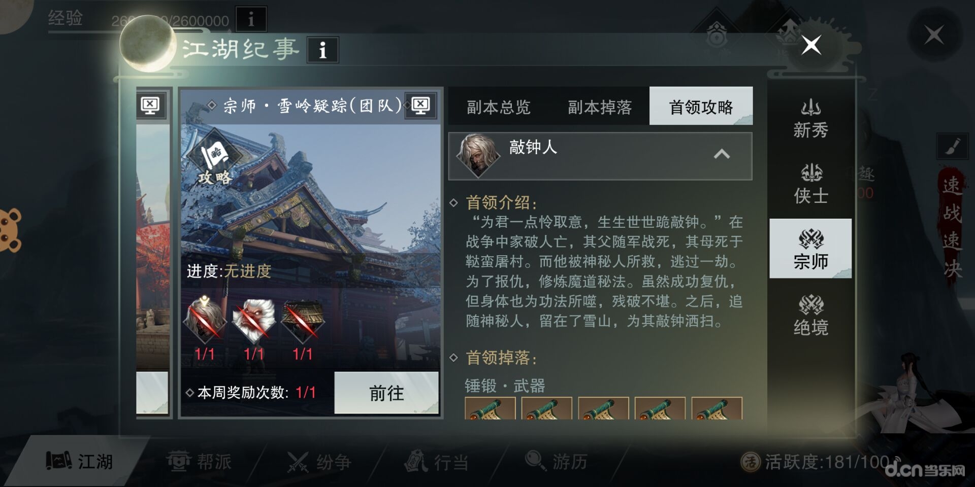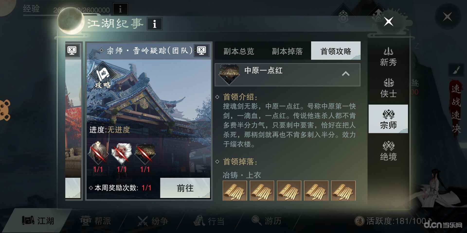 10人团本雪岭疑踪-宗师在105级开放,推荐修为8500以上职业参与,搭配:和尚1人+奶妈3人+华山2人+武当+暗香,建议暗香2人内,暗香比较脆,老躺尸就很无奈了,2个华山保证破盾好打一些,当然,等级升起来以后,boss的等级也会随之升级,在这里先说刚开放的时候的攻略(后期可以卡boss等级,略复杂,先不说),下面放详细攻略。
