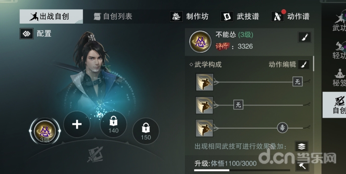 在自创武学玩法中,凡等级达到130级的少侠,都可在武学界面中开启自创武学之路,武学名称、招式动作、技能效果统统由你来决定!