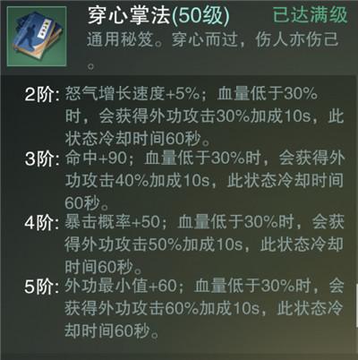 生命值低于30%会增加10%外功攻击 满级是增加60%外功攻击 物理职业 反击利器!