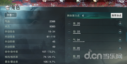 将劲作为加点的主要点,同时在体上投入部分点数增加自己的血量