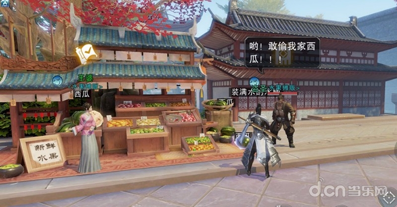 金陵城下的王家瓜摊可是玩家们最热衷的去处之一,这里的瓜贩NPC王猛性格有脾气,当顽皮的玩家任性“偷”西瓜,他可是追着玩家打一顿的!即便如此,还是有许多玩家顶风作案,偷走西瓜!面对如此“偷瓜热”,瓜贩也只好叹一句:什么仇什么怨啊……