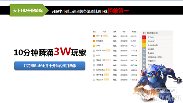 9月23日下午3点,《天下HD》一经上架便迅速占领了各渠道封测下载榜单第一,铺天盖地的气势真是把小编吓得坐在地上了。玩家热情也远远超出预期,不断蜂拥而至,为了让大家都能都顺利进驻游戏,开花组忙得头破血流,BUFF全开,在十分钟内连开两服!但是遗憾的是,由于此次仅是极小规模测试,抵挡不住热情的玩家,开花组不得不在上架半小时后关闭了注册入口,令众多玩家深感遗憾,只好继续期盼公测的到来。