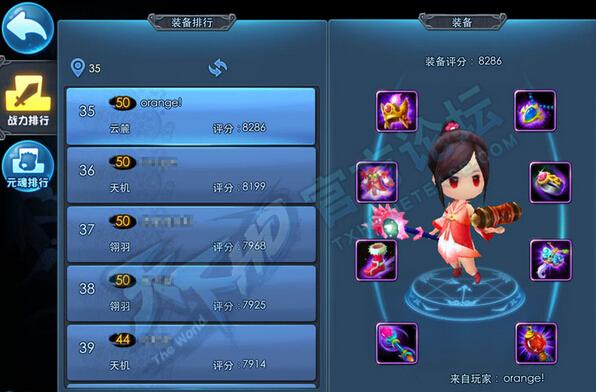 在战力排行榜中,排行在前100的玩家可以点击排行列表上方的定位按钮快速找到自己的位置,我们还可以点击其他玩家的装备查看装备属性哦。