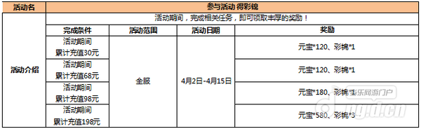 活动详情:大荒华服盛景中怎么能少了你的身影,玑哥特别开通华服促销商店,现在充值不仅能获得巨额数量的元宝返还,更能获得兑换华服的珍稀道具彩锦奖励哦!