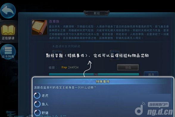 研读过程中会随机出现特殊事件哦,主要是默经答题,如果不完成(答对答错都可以)是无法领取默经经验的。