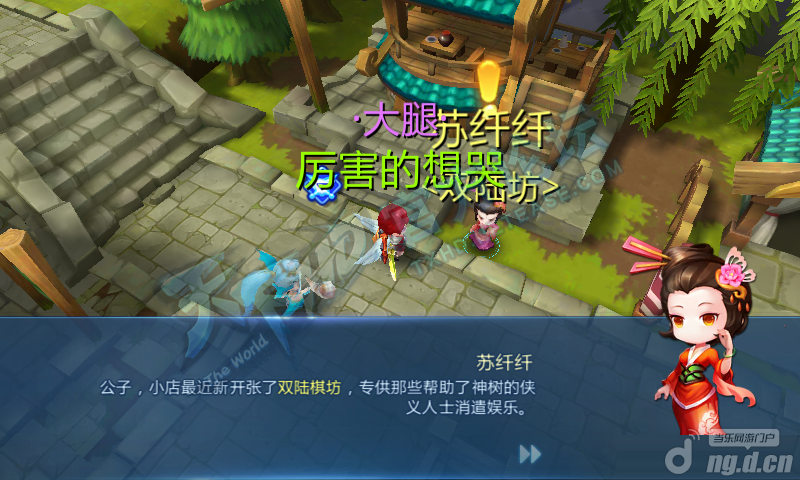 在九黎城中找到苏纤纤,对话进入双陆坊副本: