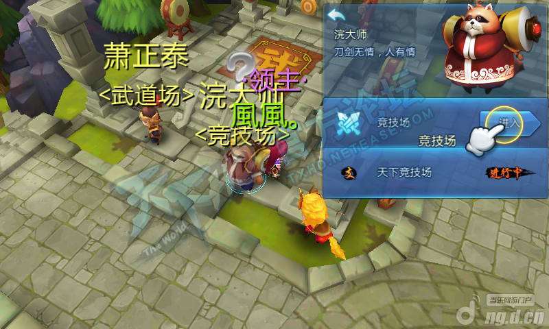 在天下HD中,人物达到25级会接到竞技场分支任务,在九黎城中找到浣大师进入,竞技场每天可以进入10次。