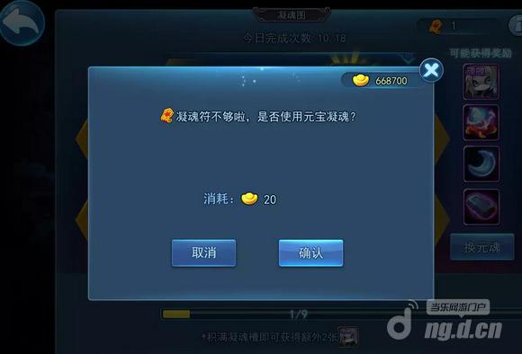 3、若没有凝魂符,可以用元宝代替,第一次40元宝,第二次60元宝,第三次80元宝