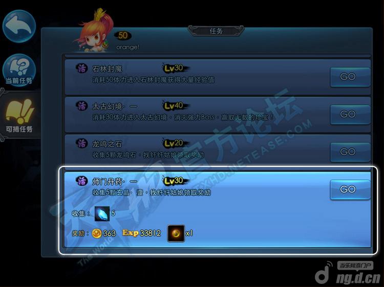 我们到了30级就可以找门派大师姐领取师门丹药的任务了(先完成支线-师门新秀任务),这也是一个收集类的任务,我们需要提交玄晶来完成任务,任务完成后不但可以领取经验奖励,还可以获得一个经验丹哦,使用后又可以获得大量经验了,所以是双重经验啦。但是玄晶可是开孔的材料呢,所以我们在做这个任务的时候可要先看看包中玄晶数量啦。这个任务每天也可以完成多次。