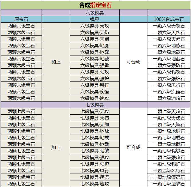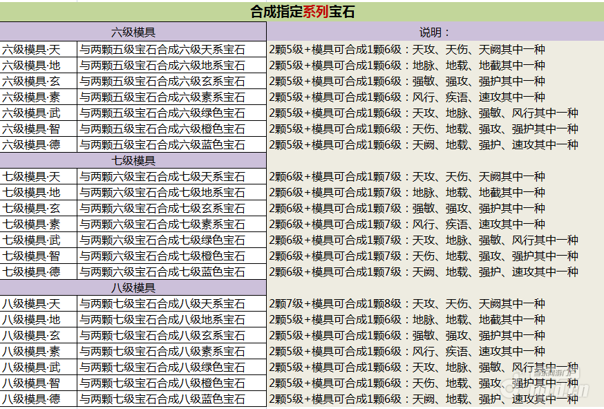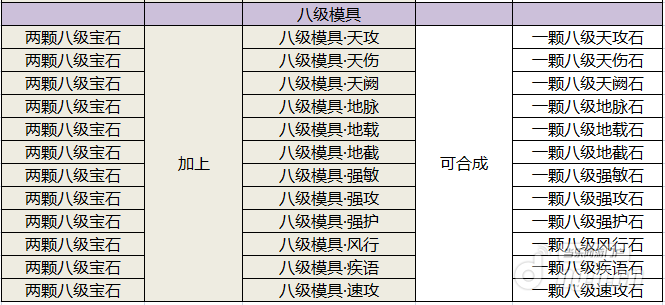 第二类(指定重铸类):任意2颗宝石,合成1颗指定的同级的宝石(可以100%合成模具对应宝石)
