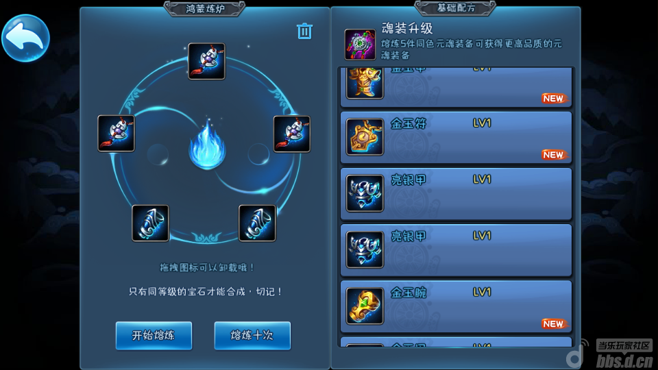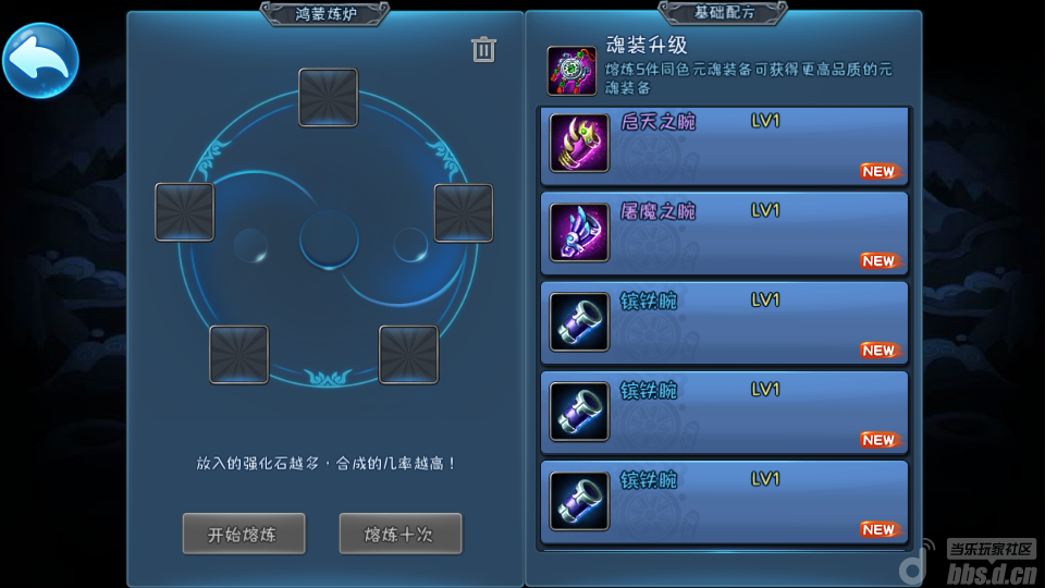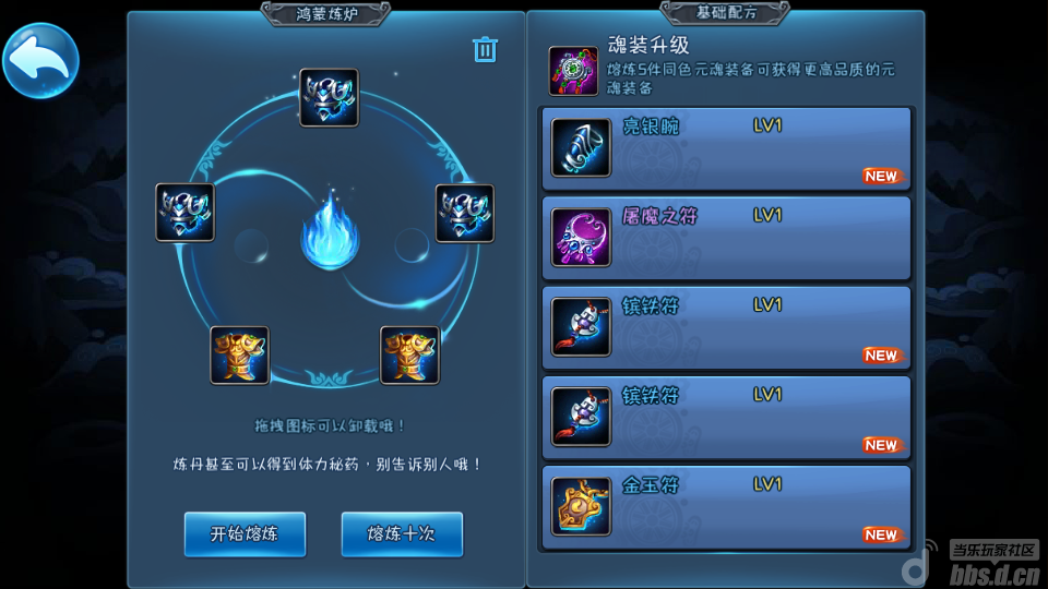 宠物魂装可谓是宠物的力量之源,正所谓好马配好鞍,同阶级的宝宝如果配备了更强力的魂装那在武斗场和刷副本时可谓是占尽了先机,什么?你说你花了好多元宝开搜神袋都没开出来?好吧……蓝装你总有吧……有一大堆!!!额,好了好了别桑心了,不怕,咱有蓝装一样出紫(☆_☆)下面我就给大家介绍一下怎样合成紫宠物装,基本方法如下▼▼▼▼ 首先你需要拥有15件以上的蓝色宠物装备,【因为本人提供的方法并不是100%可以一次性合出来我只能说经过多达480次左右的测试,我给出的这些是成功次数最多的】然后进入位于主城下方传送石位置的鸿蒙炉