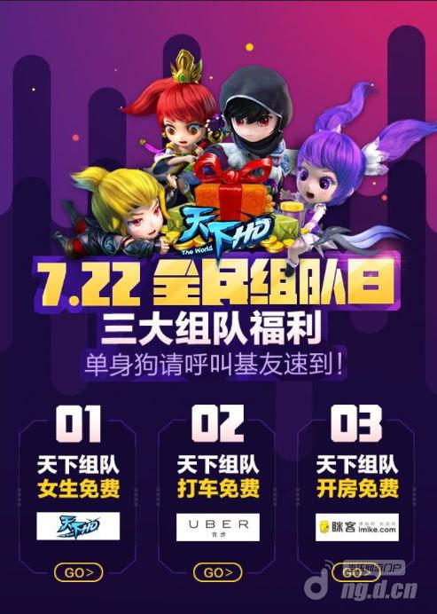 除了有趣的游戏内活动,《天下HD》“722全民组队日”活动还将为大家送上“玩住行”一条龙福利。男女玩家组队同玩,幸运CP中的女生将获得免费畅玩礼包。在上海的玩家,则有机会获得“1元住一夜”的酒店入住券! 此外,天下HD还携手“Uber”带来出行优惠,在Uber中输入“网易天下HD”优惠码,新用户即可获得30元的乘车优惠 。无论是游戏内还是游戏外,都让玩家感受到组队的乐趣!