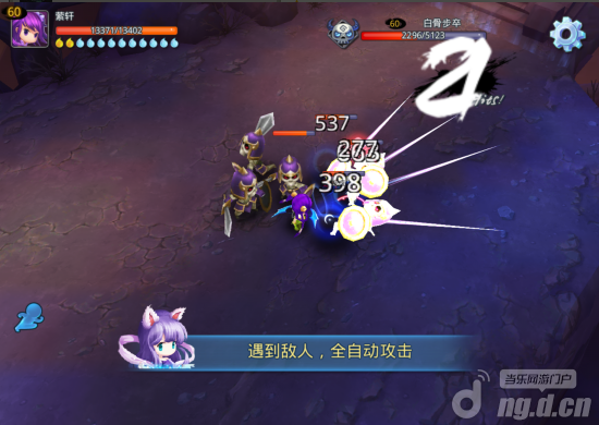 在《天下HD》中遇到敌人将会自动攻击,普通攻击会积攒技能点,不断攻击就可以等着放技能咯~