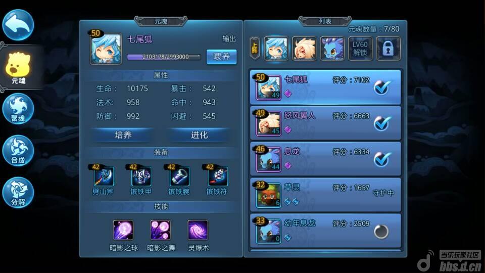 升级的方法说完了,下面说说更热点的话题,宝宝,也就是元魂珠。本人左面百里的单抽,目前抽到了一个七尾,一个息龙,昨天中午又抽了个鸟人。三个紫,蓝色有几个,垃圾就不说了。最高50级紫,最低32级蓝。很多人问我抽取技巧,我只想说,全看运气。所以不能强求,毕竟内测,要删档的。抽到的里选一个升到错能再生,其他选3个慢慢升,有了好的马上分解换新的,多核没有将就着就行,奉劝广大玩家,真爱元宝,远离10连抽。