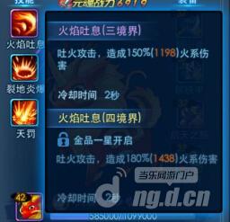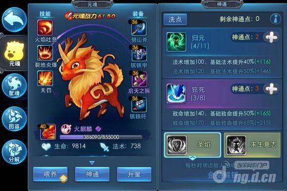 PS:火麒麟在未河蟹之前是带眩晕技能的,后来不知道是哪里被人看不爽,给弄成了个只有减速的鸡肋了。 作为一个法系宠来说,变成近战后血量防御还比别人的低。 怀疑可能是金元魂的神通(圣焰)的BUFF太强大,因为并没说持续掉血掉多少。所以这个如果有人升金了还望告诉楼主一下。。 然后就是如果有其他的元魂的话是不建议练这只的,前期可以用一用,后面就先放着压箱底吧。拿去守镇眼也是好的。(个人看法,不喜勿喷,谢谢)