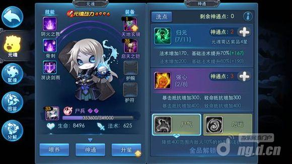 来说说我对尸兵的看法。尸兵的属性应该是定位在辅助与小肉之间。 本身的伤害不俗,PVP时技能的范围跟不良BUFF加成给群战照成很大的助力。 从神通点也可以看出,加血跟加抵抗的属性也证明了这一点。所以综合因素来讲,这都是一只值得培养的元魂的。