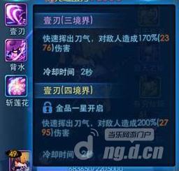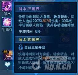 (2)烈焰醉世:拿起身后酒葫芦,向前方掷出,对敌人造成220%伤害。 冷却时间 8秒