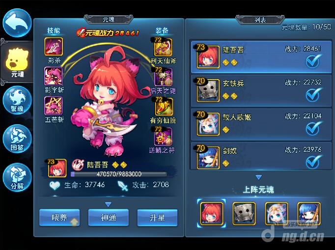 接着来说下元魂的搭配吧,一般一个人物抽一次元宝十连宠物就足够了,因为十连的随机性和运气成分太大。这里首先推荐的是桃木兵,因为双陆坊的关系,桃木兵的可获取程度是最容易的。然后是虎仙卫,在我眼里虎妞是一种神宠,凭借技能的百分比伤害优势和神通,往往在副本boss和太古幻境'中拥有巨大优势。尽管百分比伤害对世界BOSS无效,但是虎妞的物理输出让我往往在世界boss战斗中取得不错的输出成绩。然后推荐的是剑奴以及小鲛 尸兵,剑奴可在成就中获取碎片,小鲛通过充值,尸兵通过势力任务,这些在我看来都是性价比非常高的宝宝。最后我有推荐的冰熊,我的紫五冰熊是通过日常的十连聚魂出的蓝色冰熊六只合成的,冰熊的技能已经金色在竞技场的表现可圈可点,如果有能力还是推荐养一只的,竞技场云麓的输出就是依靠宝宝拖延时间来达到人物的最大输出从而取得胜利。