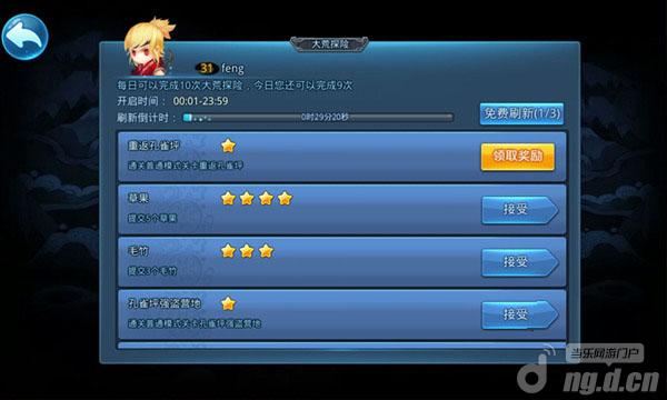 日常任务25级开启,每天可以完成10次,在告示牌处领取,可以自己选择任务,每次刷新5个任务供选择,不满意可以自行刷新,每天可以免费刷新3次,奖励大量经验、金币以及各类材料。