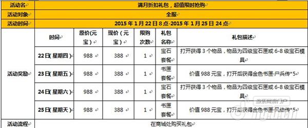 1、活动时间,礼包将在游戏商城的热卖柜面出售,请注意活动范围及限购次数;