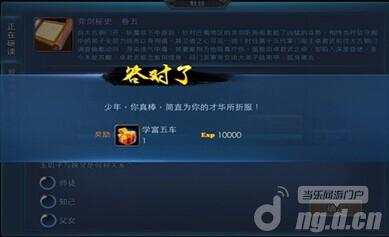 4.答对了会有比较高的经验奖励和一个礼盒奖励哦,礼盒可以开出游戏中的一些道具。答错了的话也能获得少量奖励,但是也没有关系,这并不影响你默经的经验奖励哦。