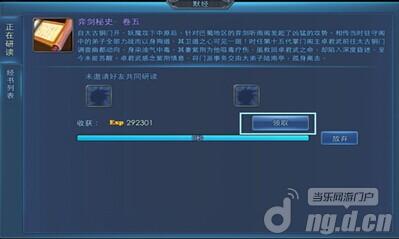 5.研读完毕后就可以领取全部的经验奖励了,当然了你也可以在中途来领取奖励,每个180秒即可领取一次,你可以分多次领,也可以最后一次领,总经验是一样的。