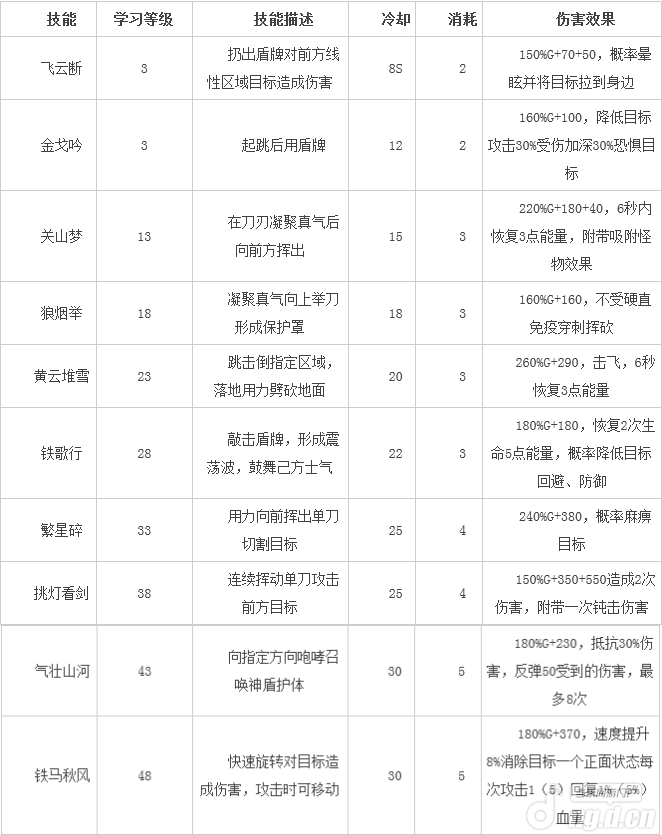 天机技能详细数据: