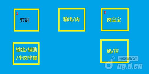 在这里我要特别说明下,上排 1和3的弈剑位置视情况而定,假定弈剑的正对面是天机,位置为1,那么建议1和3互换位置(为了躲天机的大风车和地板)就这么简单。