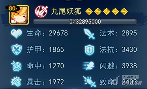 80级5星九尾妖狐基础属性图(神通:归元、凌云步、求生意志;未穿戴装备)