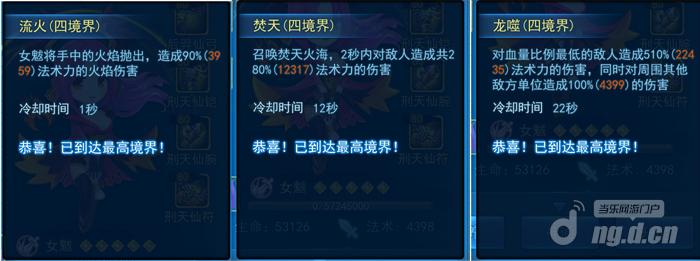 2技能焚天:有人说如果给女魃一个控那就完美了,其实如果注意发现的话,2技能如果搭配上混沌之焰的神通就是一个控,12秒,会有50%的几率造成对手混乱。不过需要和3技能的高伤害进行取舍,建议远程玩家可以尝试一下这个搭配,近战职业以3技能为主。