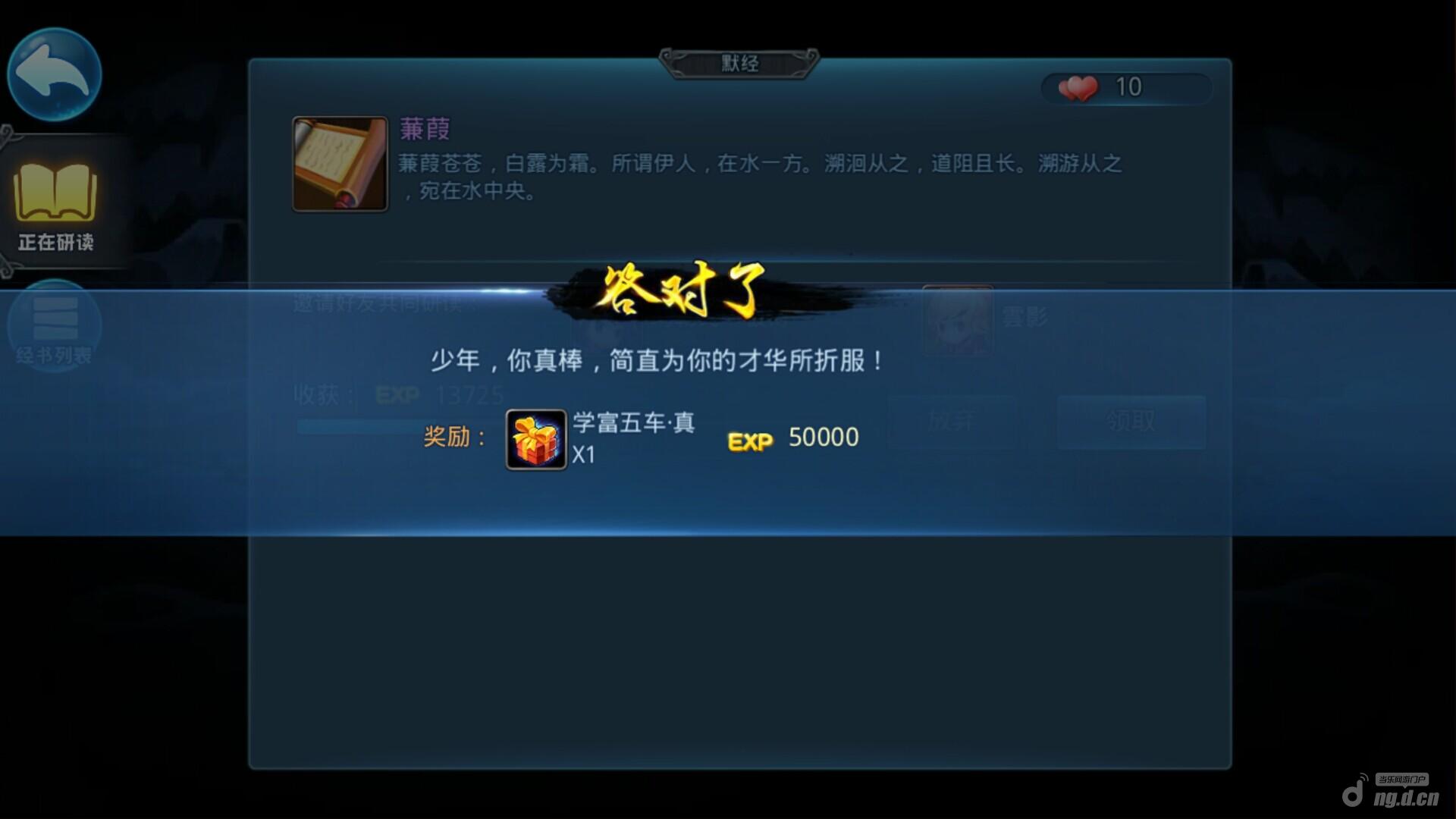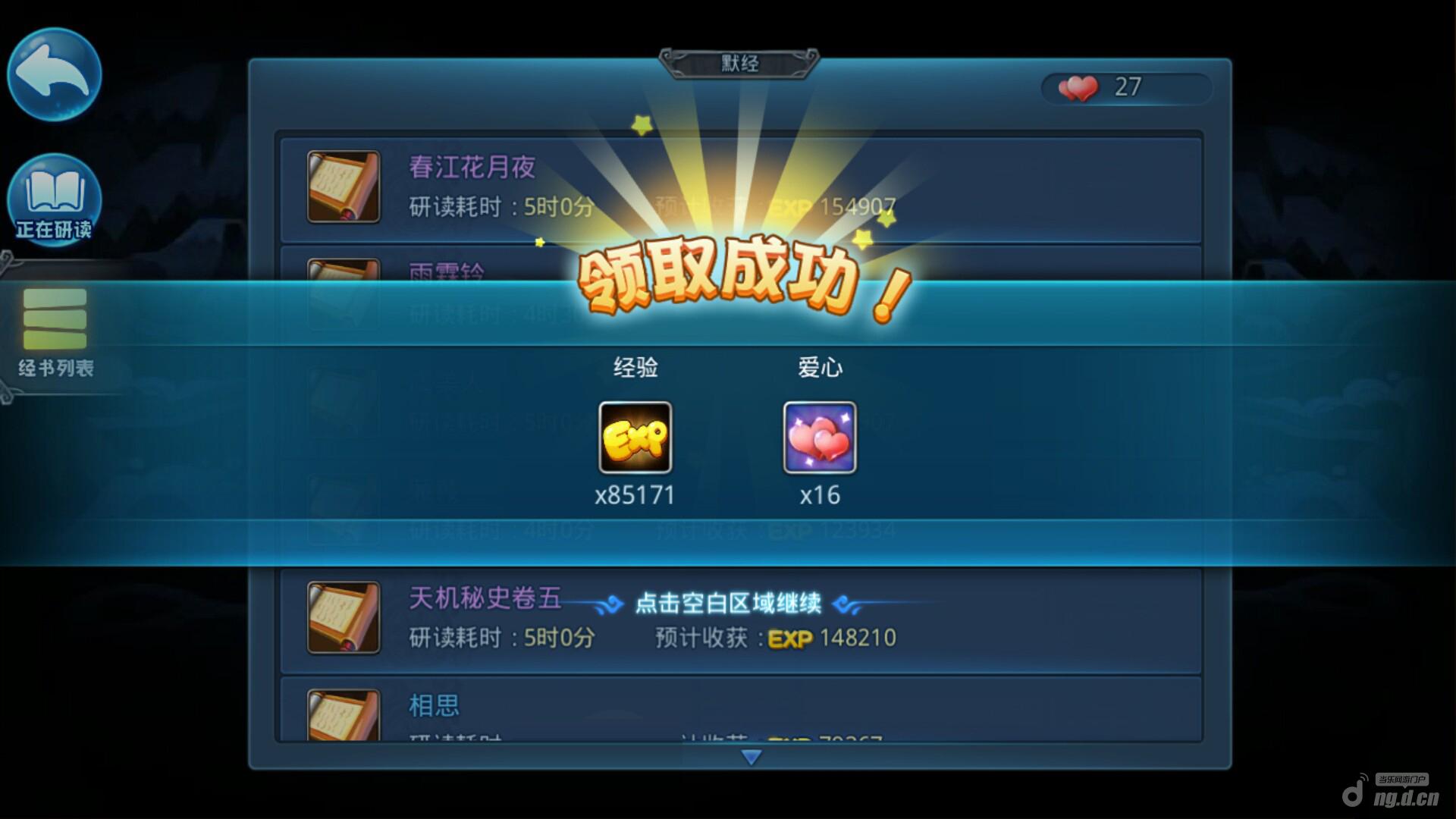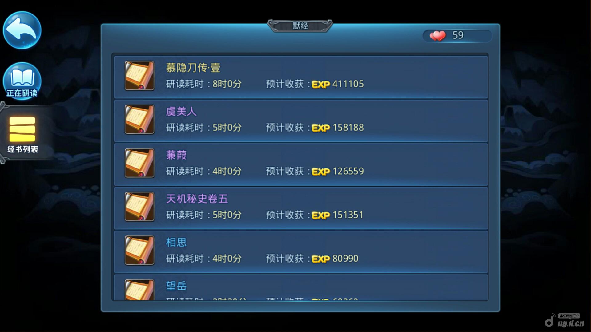 根据经书的品质不同消耗的时间以及所获得的经验跟金币也不同。并且有几率获得其他奖励。