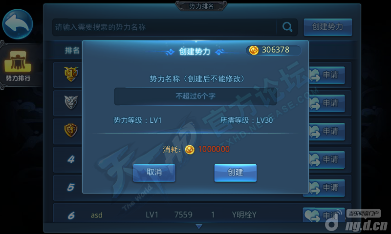 《天下HD》创建、加入势力要求: