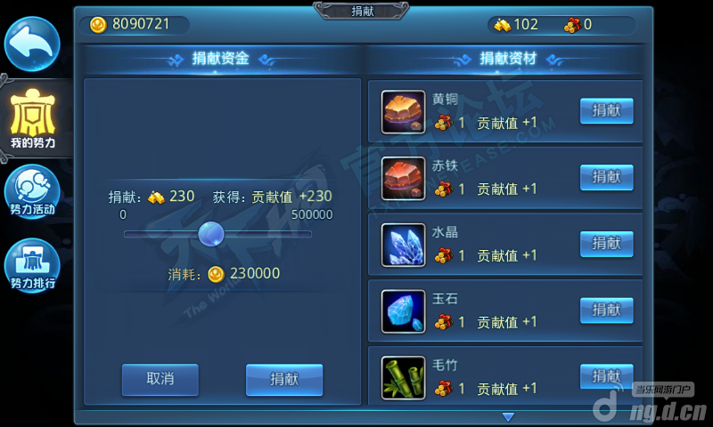 捐献的材料可以通过生产技能来获得,捐赠物资资金将会增加自身贡献值