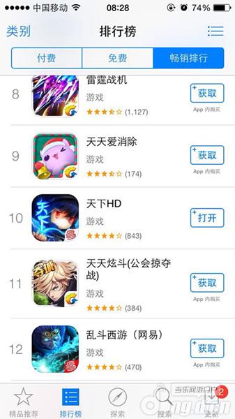 2014最受期待动作手游《天下HD》12月18日24时App Store首发,短短一天后便跻身游戏免费榜前三,霸占热门搜索榜首长达36小时,不到48小时即拿下畅销榜第10名的成绩,力压《海岛奇兵》、《天龙八部3D》和COC等畅销爆款。