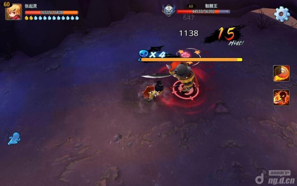 游戏最明显的一点就是没有采用手机网游中常用到的虚拟按键,人物的移动只需滑动或点击屏幕即可完成,游戏取消了时下手机网游较为流行的挂机元素,任务、练级主要选择副本的方式,在副本中只需要将人物移动到怪物附近,既能实现自动打怪,游戏在屏幕右侧一共设置了5个技能快捷键,点击任意快捷键,即可执行装备在快捷键中的相应技能,打怪期间,双击屏幕任意位置,人物会翻滚躲闪,可以躲避怪物和BOSS的伤害,翻滚会消耗体力,体力显示在屏幕左侧,打怪中,只要连续攻击敌人一定程度,会有机会让敌人进入硬直状态,敌人头上会出现“斩”的字样,此时,把人物向敌人滑动,则会触发大招,大招时会出现镜头特写,特效华丽酷炫,打击力感十足,当然对怪物的伤害也是相当可观的,以上这些听来复杂的操作,实际游戏中仅以一根手指即可完成,与两手操作的方式相比别有一番趣味,操作更加连贯,一气呵成。游戏后期BOSS的血量和防御成倍增加,而且BOSS的范围和追尾攻击方式层出不穷,一不留神,便会损失三分之一的血量,所以后期非常考验玩家的操作技巧,像笔者这种手残人士,经常会出现被BOSS追的满屏跑的狼狈现象。城市中的操作还是一如既往的点击任务自动寻路的操作方式。