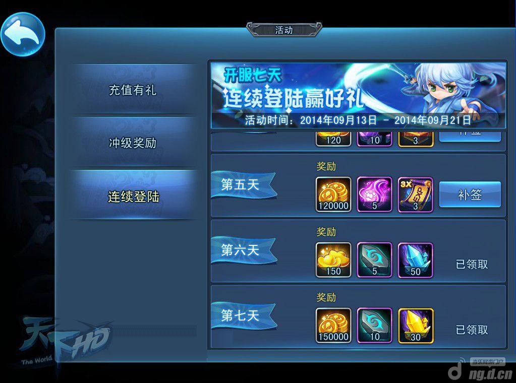 每天签到可以获得元宝(游戏主界面右上角的“活动”按钮进入)