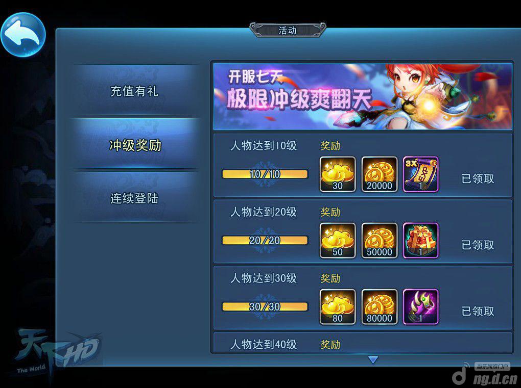 人物升级获得元宝(在右上角的“活动”按钮进入)