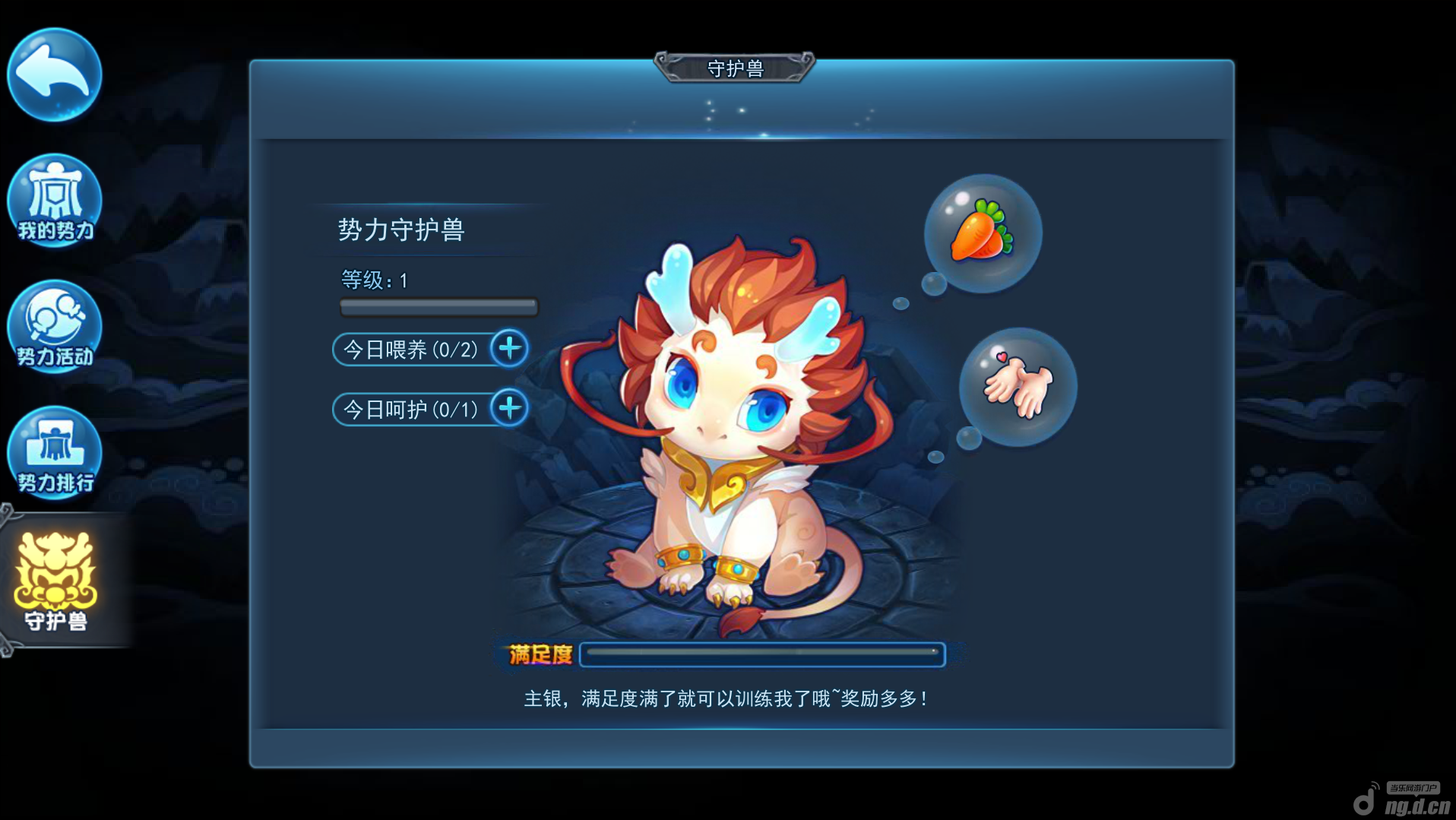 先点击势力兽右上方的萝卜气泡~他喜欢吃萝卜吗?NO~