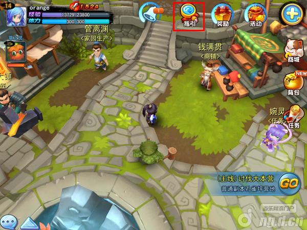 在城镇中时,我们可以在上方找到“指引”的按钮,小精灵就在这里面啦,点开后就可以看到“精灵”。