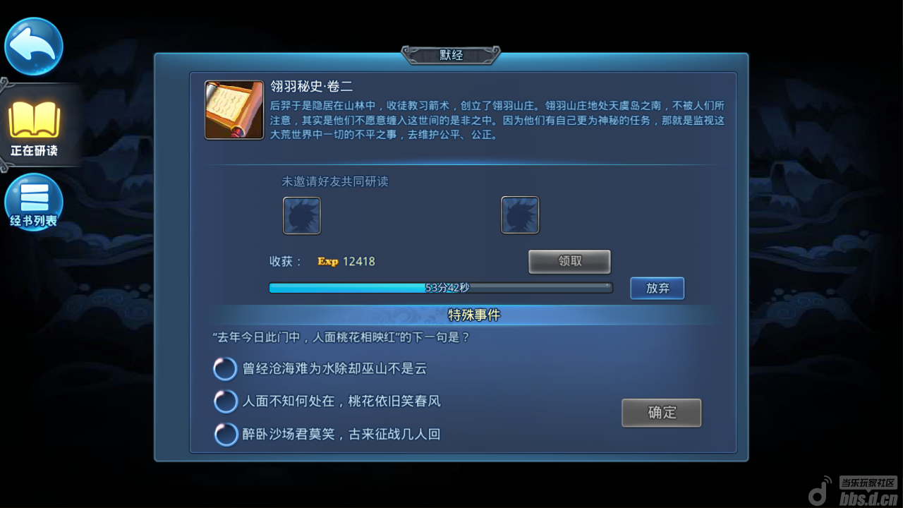 其他一些比较平常的就不介绍了,现在介绍个比较有特点的,就是阅读系统,玩家可以通过MPC进行阅读来获取经验和材料。 书本有分品质等级,每种获取的经验也不一样,品质越高,经验越多阅读时间越长。 阅读的时候,还需要玩家在指定的时候内回答一些问题,回答对还是错,影响最终的经验和材料。 也算是一个比较有特色的地方。 更多精彩内容,可以加我了解,也可以加我门公会来一起讨论。