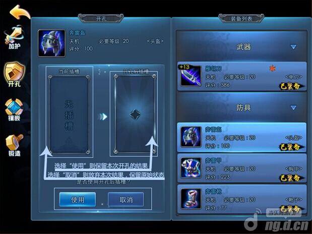 游戏中为了提高战斗力,打宝石当然是少不了的,但是我们在游戏中刚刚获得的装备是没有孔的怎么办呢?这就需要我们来开孔了,开孔操作可以使当前宝石孔的数量和形状都重新随机哦,当然了如果你本次操作的结果并不满意的话,则可以放弃保留这次结果,而保留原有的状态哦,是不是很贴心呢。