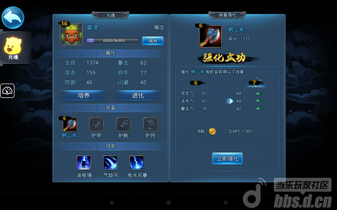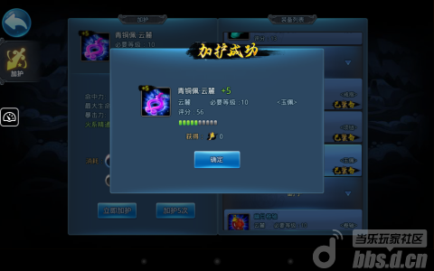 1、加护:强化系统,可以消耗强化石或者是声望来进行强化,强化上限10.不同的地方在于声望100%成功。直接在装备列表里显示出哪些是已经装备的,还是很方便的,也有单次强化和5次强化。