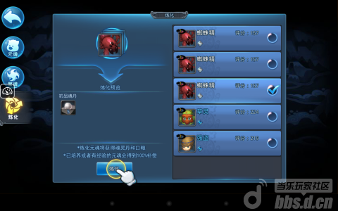3、炼化:聚魂获得的低品质元魂可以在这里进行炼化用以获取魂灵丹和口粮~