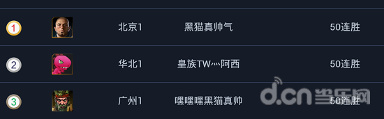本次比赛从7月22日开始,比赛期间共吸引了19300名玩家参与。经过7天的激烈的争夺,最终有三名玩家达到了恐怖的50连胜,他们分别是北京1区“黑猫真帅气”、华北1区“皇族TW灬”以及广州1区的“嘿嘿嘿黑猫真帅”。但根据他们完成50连胜的先后顺序,北京1区的黑猫真帅气的玩家最终夺得了“连胜之王”的称号,而华北1区皇族TW灬与广州1区的嘿嘿嘿黑猫真帅则分列二、三名。