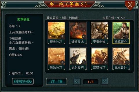 升级科技可是需要花费一定的白银和时间的。建议根据自己的需要来选择、安排白银和游戏时间。