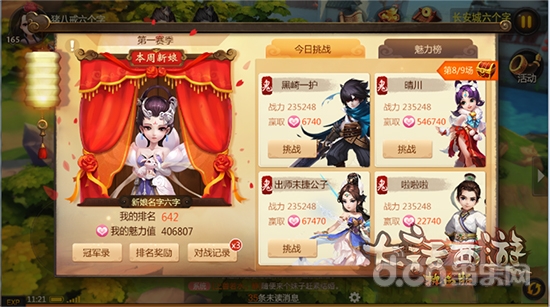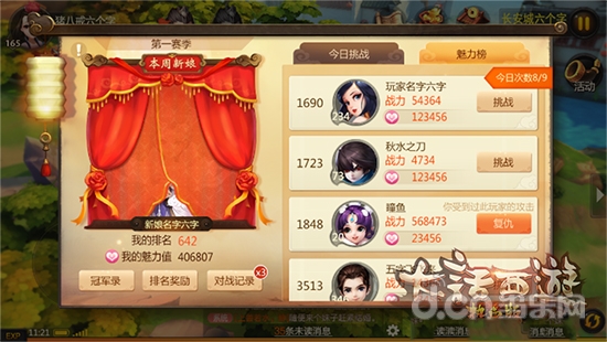 3、魅力榜根据魅力值对全服玩家排序,可以挑战附近玩家抢夺他们的魅力值,抢夺对象的魅力值越高可赢取魅力值越多(抢夺失败不扣除魅力值)。魅力榜每日可免费挑战8次,可花费仙玉购买额外3次。