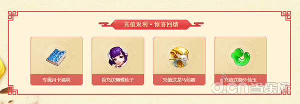 最为给力的当属充值返利系列活动,月卡和首充活动性价比超高,累积充值就送龙马仙器!“专属月卡福利”超级划算,除了立即返还300仙玉外,还将带来整整30天的持续福利,而且可以重复购买喔!“首充送蝴蝶仙子”性价比最高,首充任意金额就送强力恢复召唤兽蝴蝶仙子,以及灵兽要诀、鉴定符等道具。而“累积充值奖励”除了师贡银两拿到手软之外,还会送霸气十足的攻击型召唤兽龙马,以及终极技能书、神珠宝匣等超珍稀道具!如此丰富的充值返利,再配合“充值送额外仙玉”活动,更是实惠翻倍!