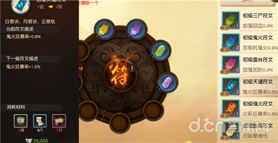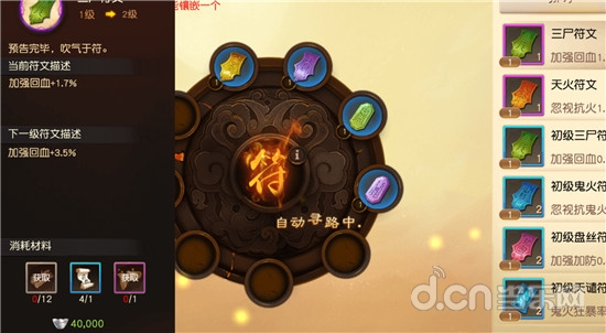 如加强回血、忽视抗火、忽视抗封印等,符文升级需要种植产出的材料。