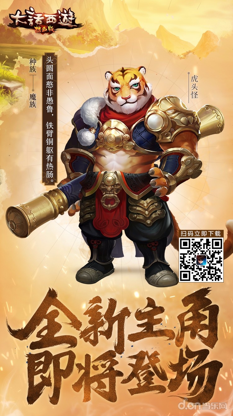 《大话西游热血版》引领大话家族全新即时制战斗,首部资料片即将火热来袭。革新的即时制战斗,独创飘逸轻功,经典召唤兽,华丽酷炫坐骑,将带你重新启程,体验波澜壮阔、热血激燃的三界之旅。资料片即将带来众多的新系统、新玩法和更加丰富的特色活动,今日全新魔族角色虎头怪首度曝光,而仙族角色龙战将、人族角色俏千金也已闪亮登场,那么最后一个鬼族的崭新角色又将是谁?一起拭目以待,看全新角色开启种族新纪元吧!