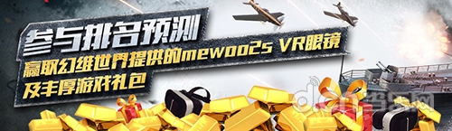 线下比赛火热开战的同时,《巅峰战舰》官网的赛事专区排名预测活动也即将在10月21日正式开启。凡是正确预测相应数量舰队的玩家,均可获得金币、银币、燃油、战舰等高额奖励。而正确预测3支以上队伍排名的玩家,还有机会获得由幻维世界提供的mewoo2s VR眼镜!同时,为了保证玩家在第一时间收看到决赛,玩家便可以在赛事专区中进行预约短信提醒,在比赛开始前,系统会提前为玩家发送比赛时间和观看地址,玩家只需一键点击便可直接进入直播间,精彩时刻一分一秒都不容错过!